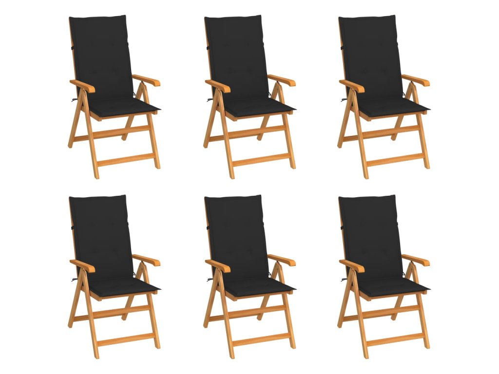 Zahradní židle 6 ks s černými poduškami masivní teak 3065567