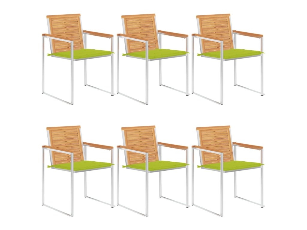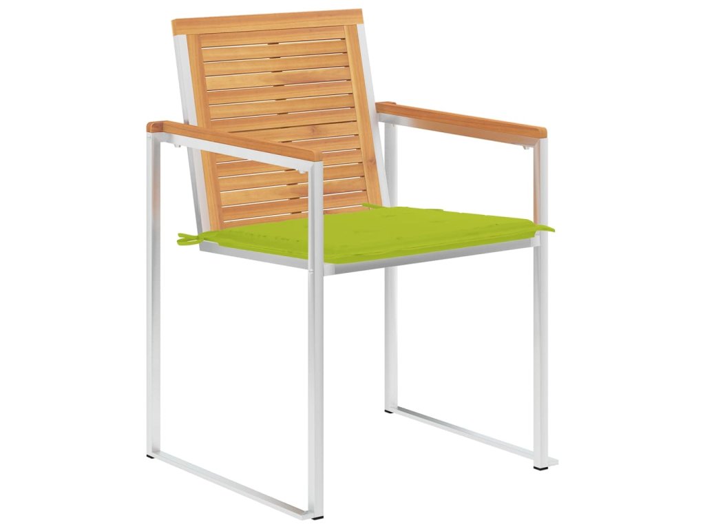 Nábytek je zhotovený z extrémně odolného teakového tvrdého dřeva, které již prošlo procesem smršťování, bylo uměle vysušené a poté jemně a dohladka obroušené. Teakové dřevo je oceňované pro svou výjimečnou pevnost a klimatickou odolnost, a proto je jedním z nejoblíbenějších materiálů pro výrobu zahradního nábytku. Je to skvělá volba, pokud si chcete pořídit venkovní výbavu, která vám vydrží sloužit dlouhá léta. Vzhledem k rámu z vysoce kvalitní nerezové oceli jsou židle zároveň robustní a odolné vůči korozi. Přiložená poduška slouží nejen jako praktický doplněk – plní také dekorativní funkci. Posaďte se a dopřejte si venku skvělou večeři nebo si jen tak odpočiňte a užívejte si počasí s touto klasickou sadou zahradních židlí.