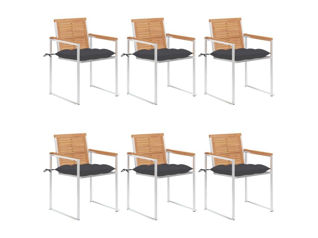 Nábytek je zhotovený z extrémně odolného teakového tvrdého dřeva, které již prošlo procesem smršťování, bylo uměle vysušené a poté jemně a dohladka obroušené. Teakové dřevo je oceňované pro svou výjimečnou pevnost a klimatickou odolnost, a proto je jedním z nejoblíbenějších materiálů pro výrobu zahradního nábytku. Je to skvělá volba, pokud si chcete pořídit venkovní výbavu, která vám vydrží sloužit dlouhá léta. Vzhledem k rámu z vysoce kvalitní nerezové oceli jsou židle zároveň robustní a odolné vůči korozi. Přiložená poduška slouží nejen jako praktický doplněk – plní také dekorativní funkci. Posaďte se a dopřejte si venku skvělou večeři nebo si jen tak odpočiňte a užívejte si počasí s touto klasickou sadou zahradních židlí.