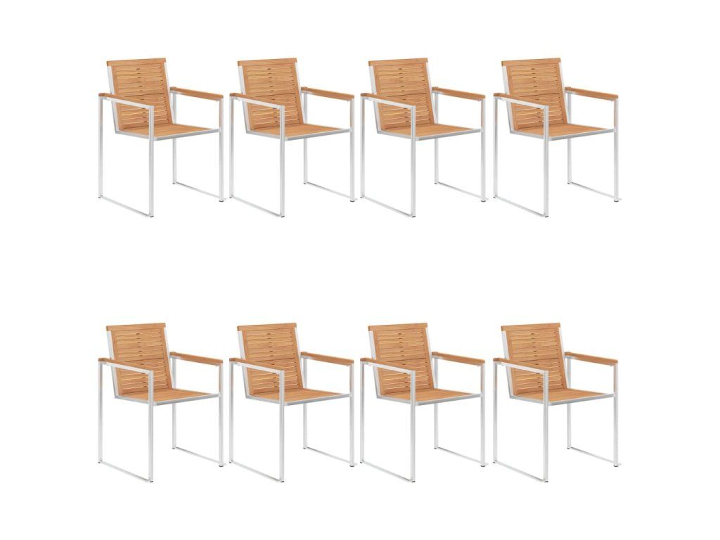 Nábytek je zhotovený z extrémně odolného teakového tvrdého dřeva, které již prošlo procesem smršťování, bylo uměle vysušené a poté jemně a dohladka obroušené. Teakové dřevo je oceňované pro svou výjimečnou pevnost a klimatickou odolnost, a proto je jedním z nejoblíbenějších materiálů pro výrobu zahradního nábytku. Je to skvělá volba, pokud si chcete pořídit venkovní výbavu, která vám vydrží sloužit dlouhá léta. Vzhledem k rámu z vysoce kvalitní nerezové oceli jsou židle zároveň robustní a odolné vůči korozi. Přiložená poduška slouží nejen jako praktický doplněk – plní také dekorativní funkci. Posaďte se a dopřejte si venku skvělou večeři nebo si jen tak odpočiňte a užívejte si počasí s touto klasickou sadou zahradních židlí.