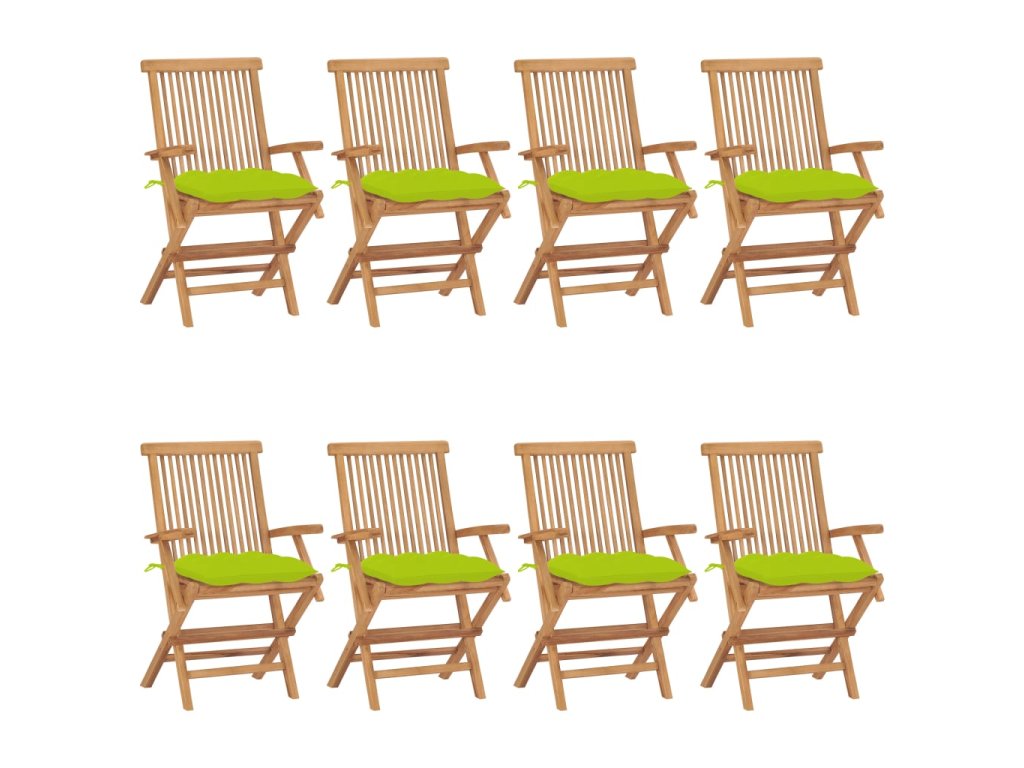 Zahradní židle s jasně zelenými poduškami 8 ks masivní teak 3072915