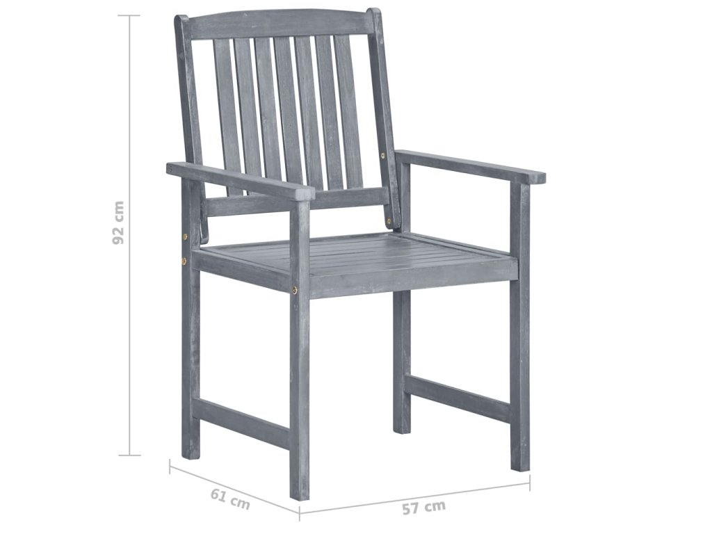 Zahradní židle jsou vyrobené z masivní akácie s povrchem zesvětleným do šeda. Jedná se o tvrdé dřevo s hustou kresbou. Masivní akáciové dřevo se vyznačuje schopností unést i velkou váhu a zároveň skvěle odolává opotřebení a působení času. Sada dřevěných židlí je stabilní, hodně toho vydrží a nepodléhá klimatickým vlivům. Jejich povrch se navíc snadno čistí navlhčeným hadříkem. Přiložené podušky vám zajistí maximální pohodlí.