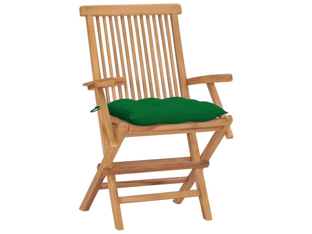 Zahradní židle se zelenými poduškami 4 ks masivní teak 3065637