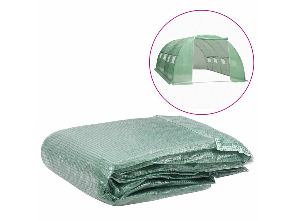 Plachta je vyrobená z PE, který je těžší než standardní síťovina. Tato skleníková plachta disponuje 8 okny pro větrání a 1 dveřmi.