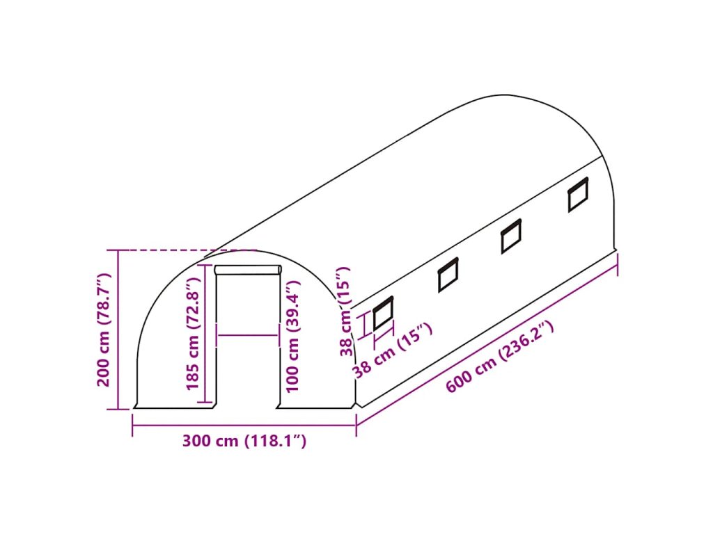 Plachta je vyrobená z PE, který je těžší než standardní síťovina. Tato skleníková plachta disponuje osmi okny pro větrání a také dveřmi.