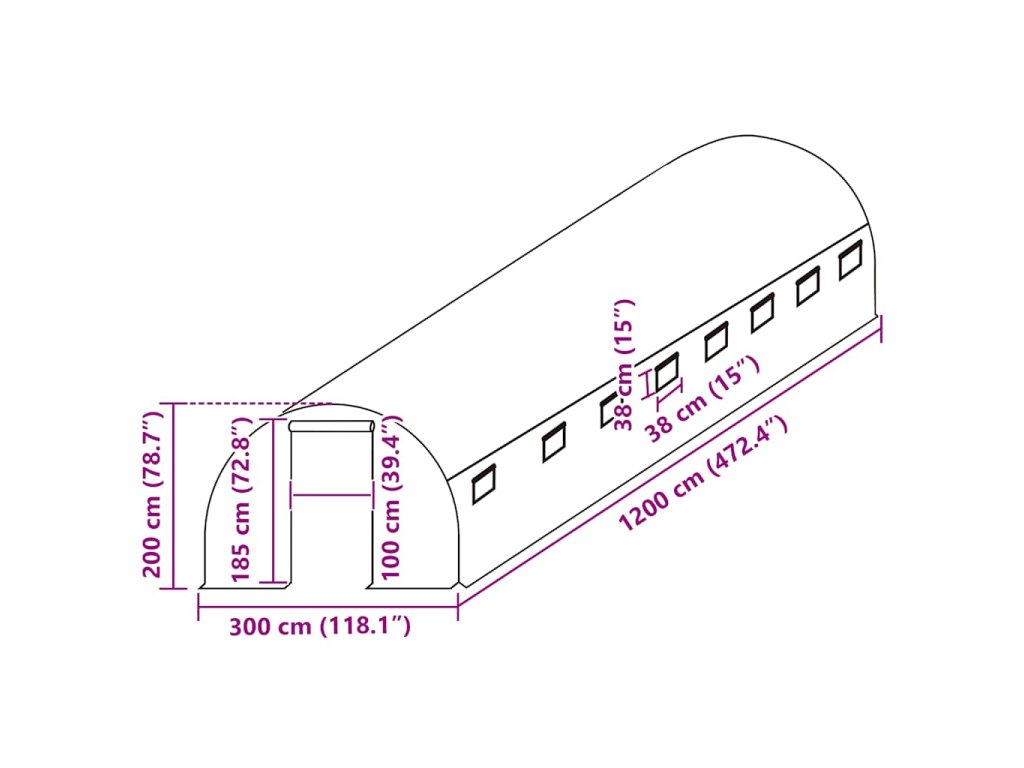 Náhradní plachta na skleník (36 m²) 300 x 1 200 x 200 cm zelená 316433