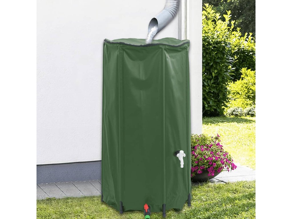 Skládací nádrž na dešťovou vodu bez námahy zachycuje vodu z dešťových srážek a ukládá ji pro pozdější použití.