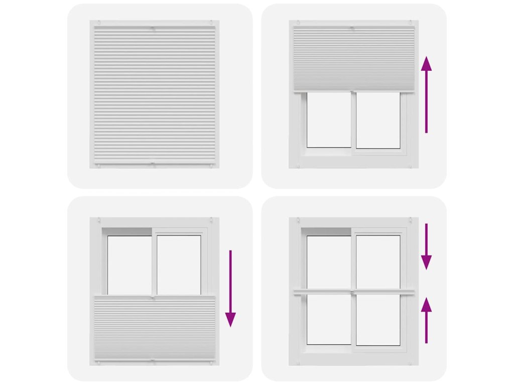 Tyto bílé plisované žaluzie jsou ideální pro zajištění soukromí a ochranu před sluncem. Lze s nimi pohybovat jak v horní, tak i v dolní části, dle vaší potřeby. Nastavením do různých poloh dosáhnete zajímavých efektů.