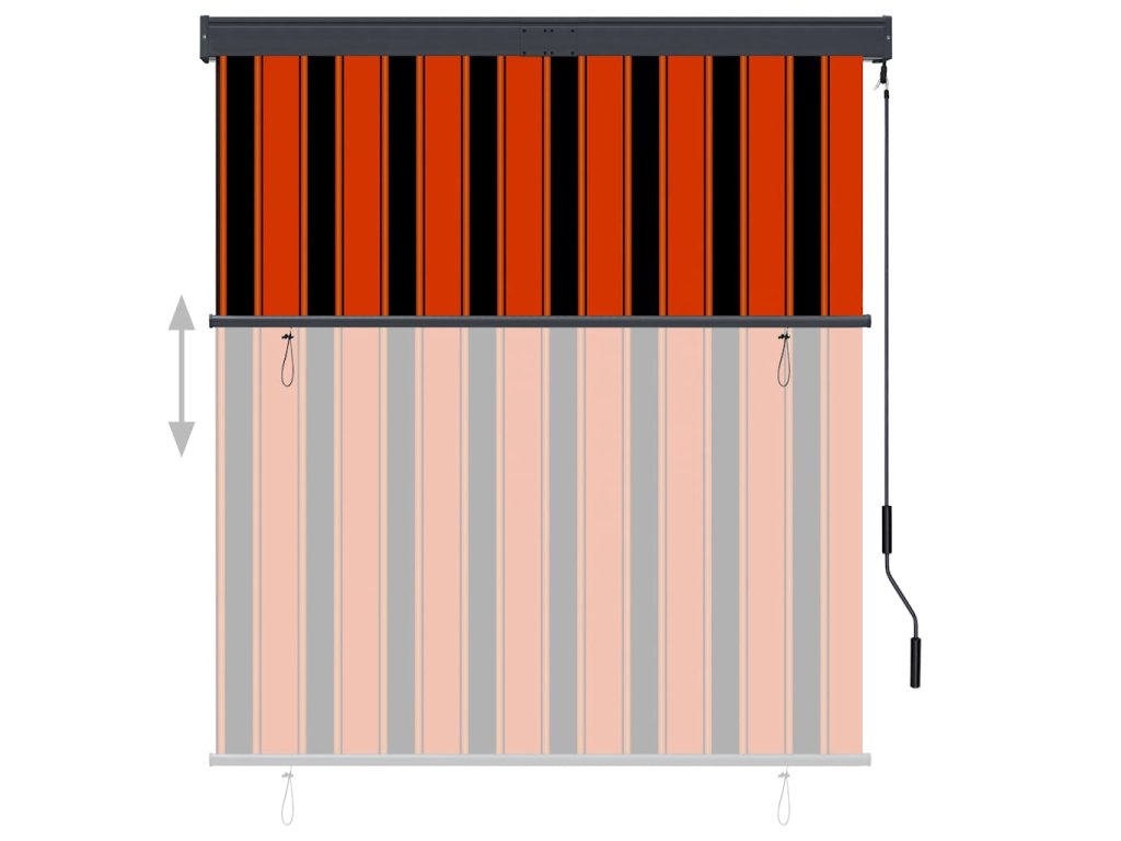 Tato vertikální markýza je vyrobená z prodyšné polyesterové látky potažené vrstvou PA, tudíž umožňuje dobré proudění vzduchu a přitom pohltí většinu škodlivého záření. Přes den vám také zajistí soukromí na terase, zahradě či v jiném venkovním prostředí. Přední tyč z hliníku a ocelová kazeta zabraňují sesouvání a prohýbání rolety. Zatahovat a vytahovat ji můžete pomocí ručního klikového mechanismu.