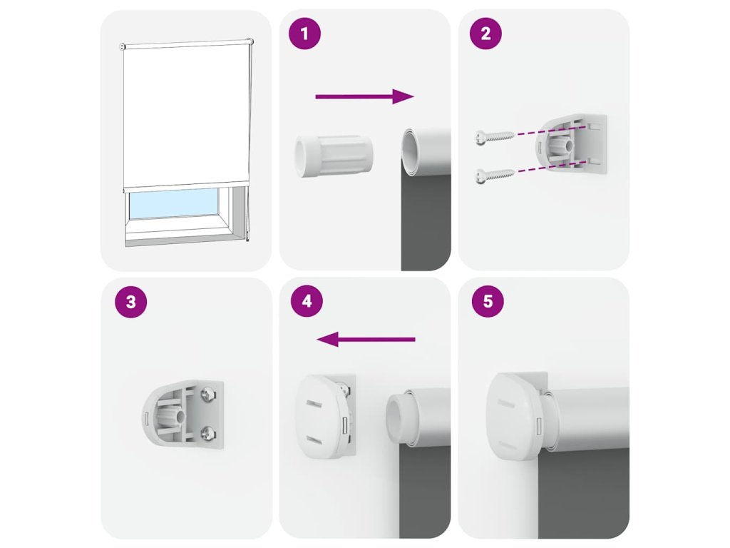 Díky dodanému montážnímu příslušenství se tato roleta snadno instaluje a ovládá. Roletu můžete namontovat na zeď nebo strop pomocí dodaných šroubů a hmoždinek, nebo ji zavěsit na okenní římsu. Řetízek lze namontovat na levou nebo pravou stranu.