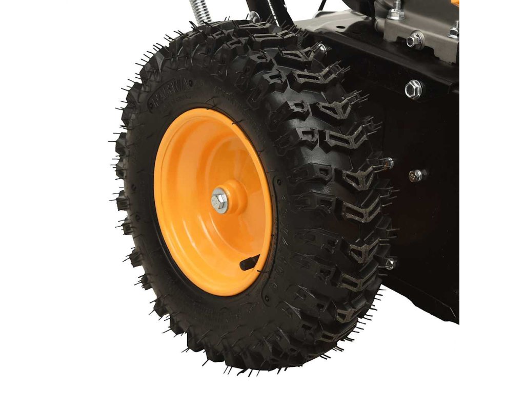 - 2stupňová fréza: Tato sněhová fréza s 2stupňovým systémem odhazování a celoocelovým šnekem snadno zvládá tvrdý sníh a odvádí jej pryč ze žlabu, aby se minimalizovalo ucpávání při odstraňování mokrého sněhu.