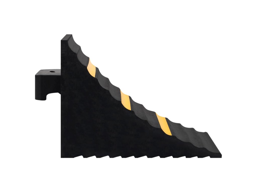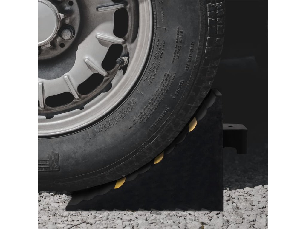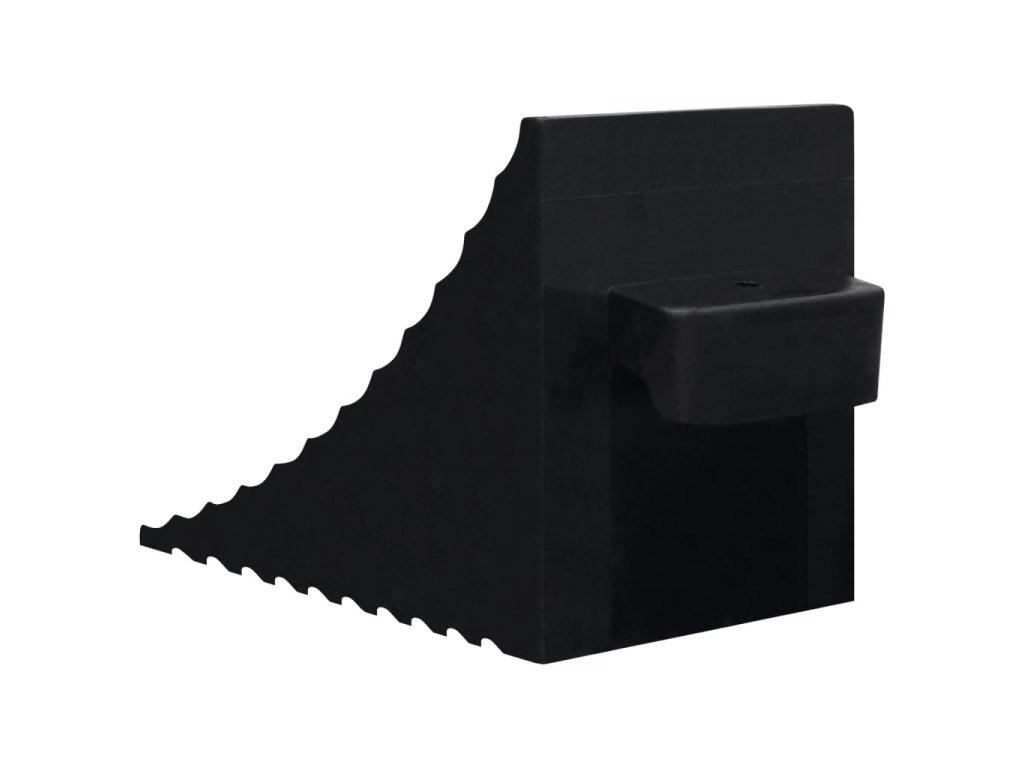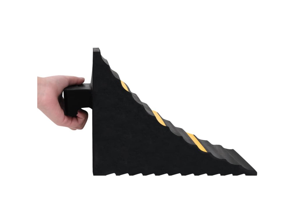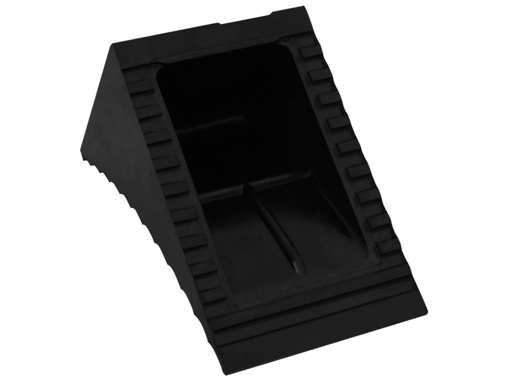 Zarážka pod kola je vyrobená z pryže a má pevnou konstrukci. Chytrý design umožňuje snadné zasunutí klínů v požadovaném úhlu, zatímco protiskluzový povrch horní strany zase zajišťuje delší přilnavost kol. To přispívá k udržení stability vozu a maximální bezpečnosti.