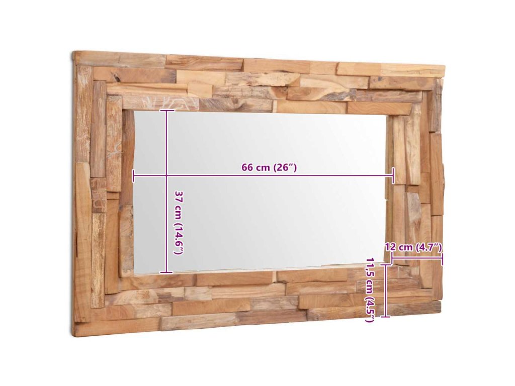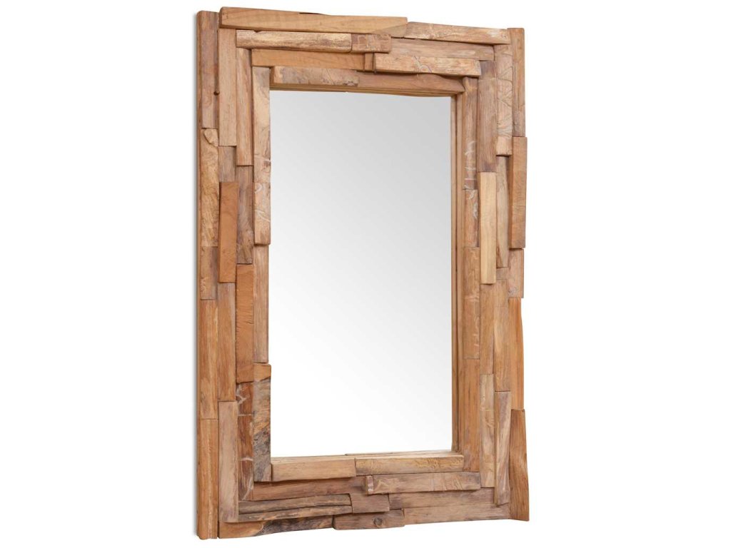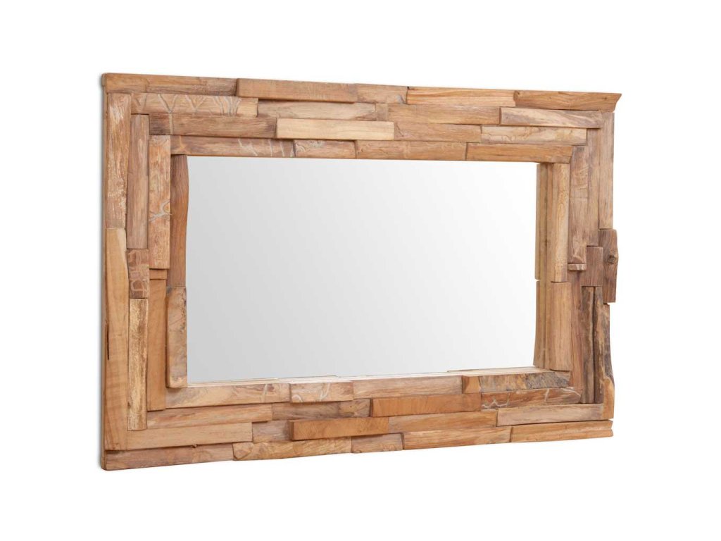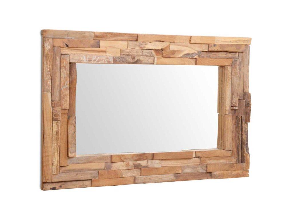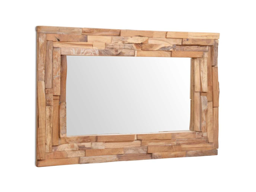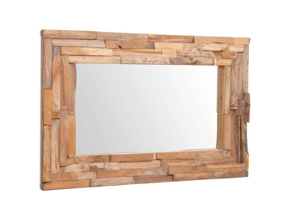 Rám zrcadla je vyrobený z kousků teaku. Řemeslné zpracování jen podtrhuje venkovské vzezření zrcadla. Zrcadlo lze umístit do každé místnosti a skvěle vynikne také v koupelně.
