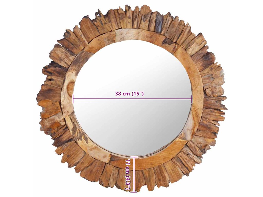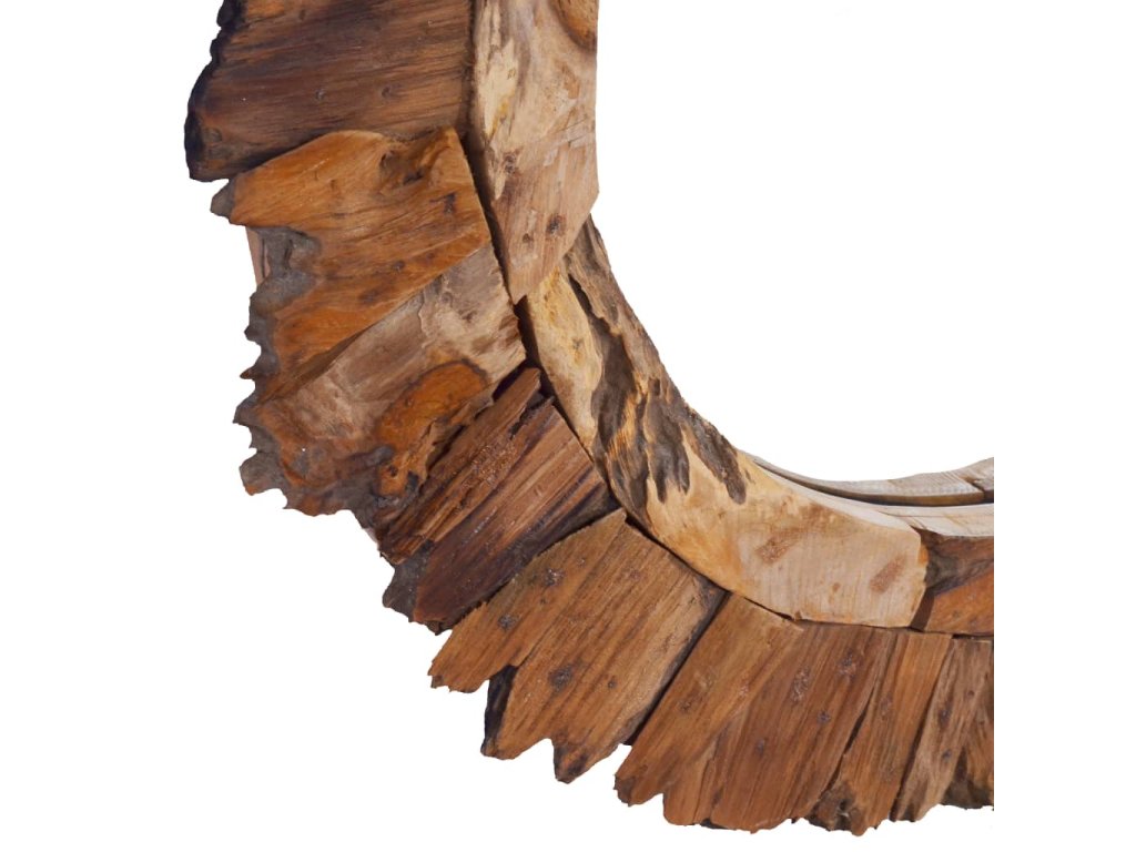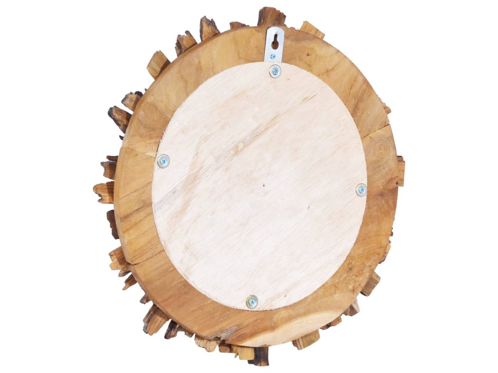Rám zrcadla s designem okvětních lístků je ručně vyrobený z přírodního teakového dřeva. Zrcadlo má tudíž výrazný rustikální styl. Vypadá skvěle v každé místnosti domu a lze ho zavěsit i v koupelně. Zrcadlo je připravené k montáži na zeď, háček je již nainstalovaný na zadní desce.