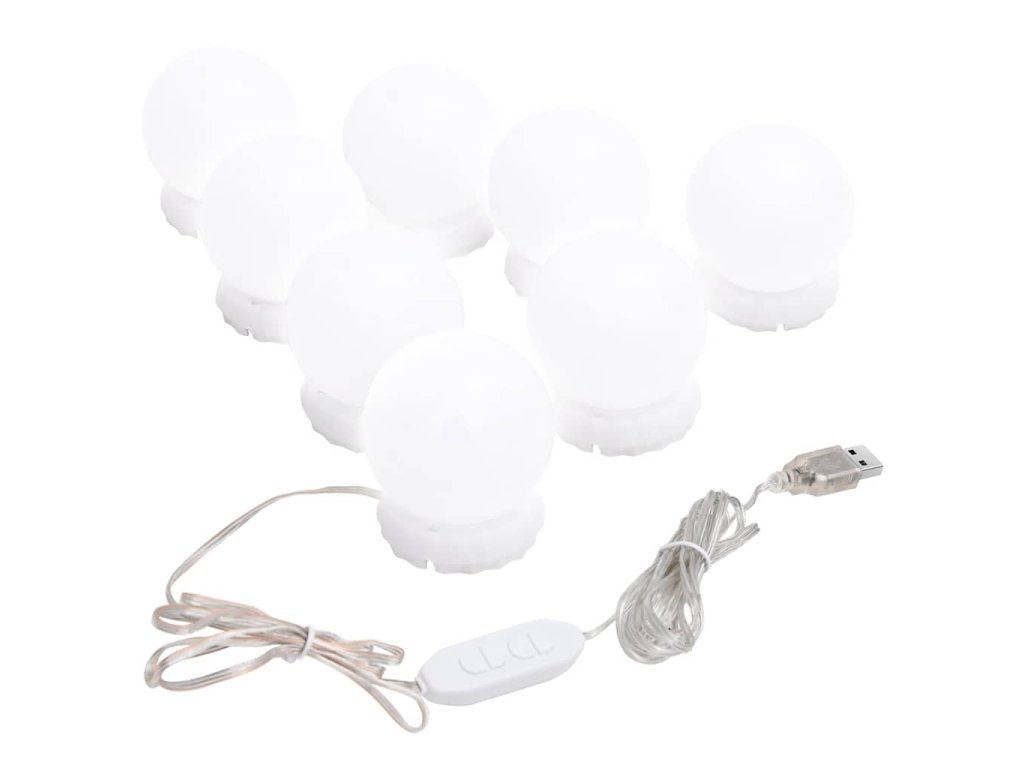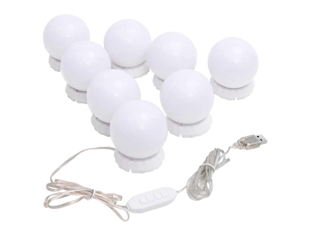 Okraj zrcadla je broušený, aby působil hezky čistě. Zrcadel si také můžete zakoupit víc a uspořádat je do ozdobného vzoru. Nalepovací světla na zrcadlo mají různé barevné režimy, které se skvěle přizpůsobí vašim potřebám v dané situaci a výborně poslouží během líčení. Světla se dají uspořádat s libovolnými rozestupy, takže připojený kabel snadno skryjete omotáním drátu kolem spodní části žárovky. Zrcadlo tak bude působit úhledným a ničím nerušeným dojmem.