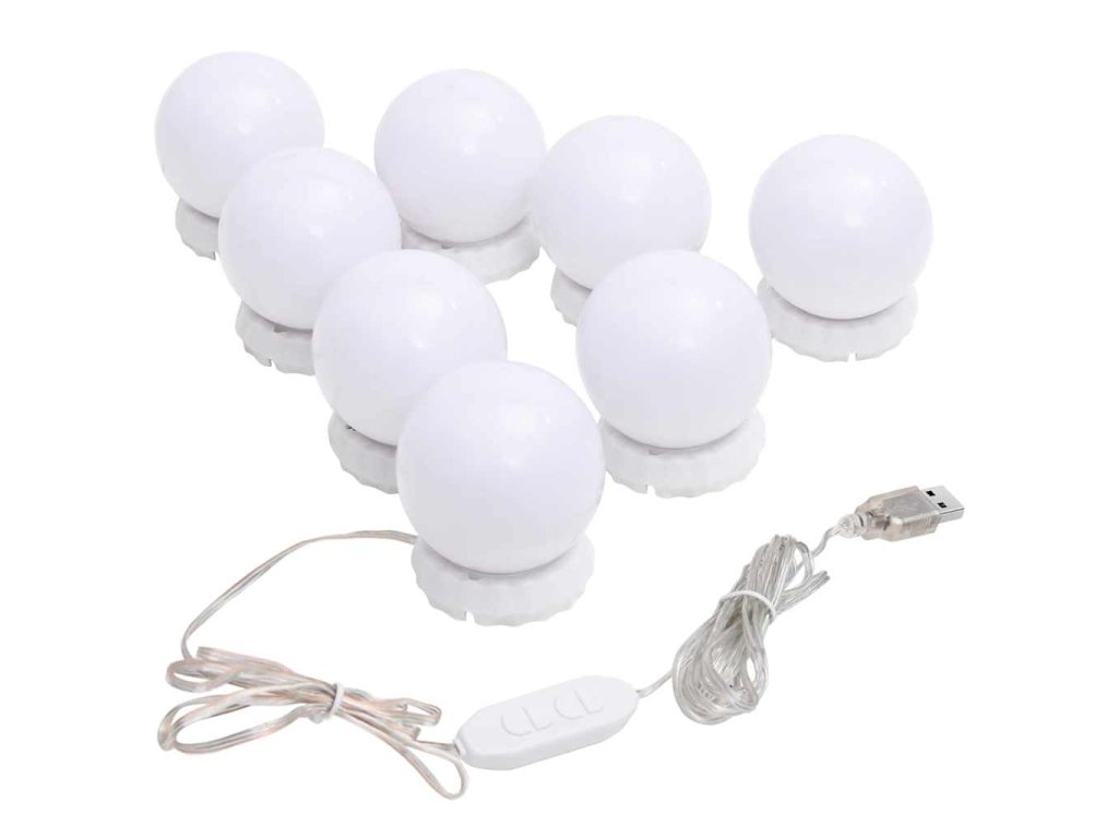 Okraj zrcadla je broušený, aby působil hezky čistě. Zrcadel si také můžete zakoupit víc a uspořádat je do ozdobného vzoru. Nalepovací světla na zrcadlo mají různé barevné režimy, které se skvěle přizpůsobí vašim potřebám v dané situaci a výborně poslouží během líčení. Světla se dají uspořádat s libovolnými rozestupy, takže připojený kabel snadno skryjete omotáním drátu kolem spodní části žárovky. Zrcadlo tak bude působit úhledným a ničím nerušeným dojmem.