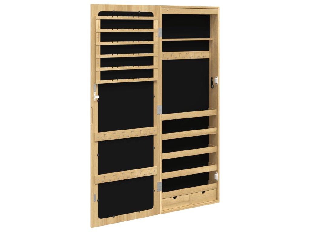 - Dostatek úložného prostoru: Zrcadlová skříňka nabízí 2 zásuvky a spoustu háčků, věšáků a poliček, abyste měli šperky přehledně uspořádané a po ruce.
