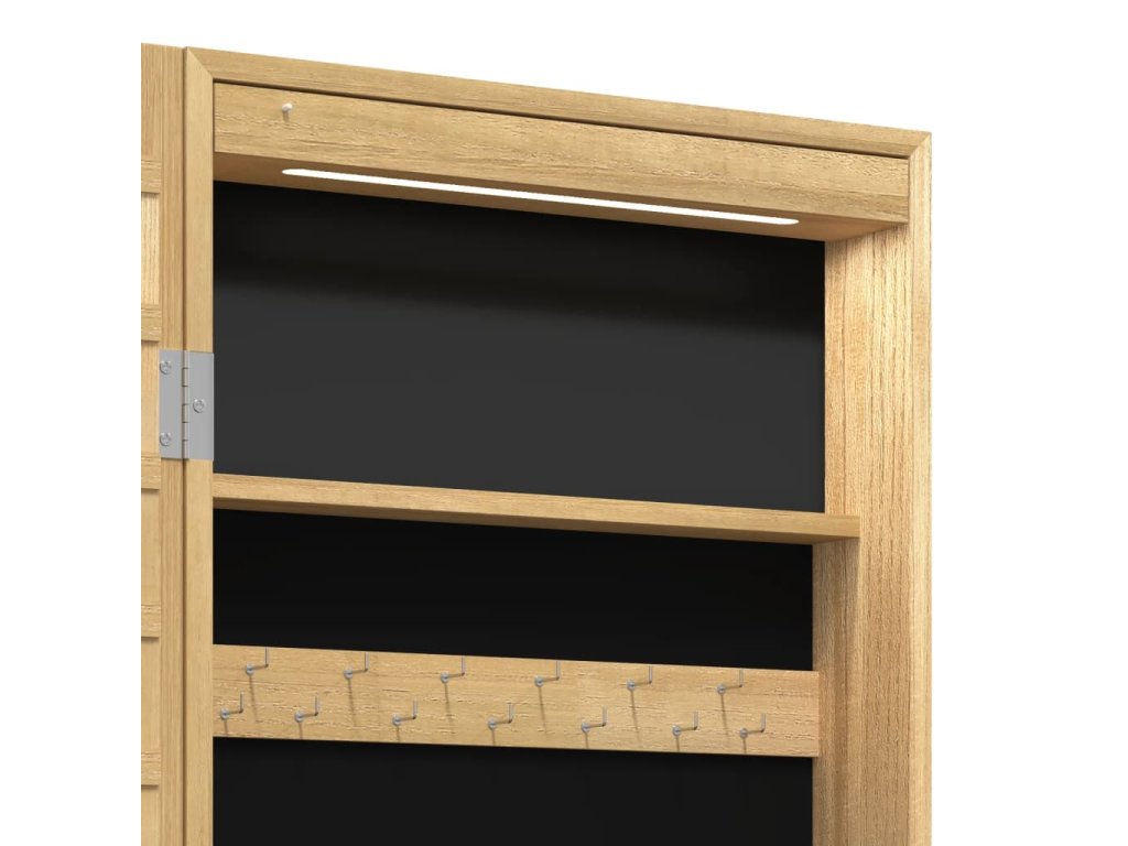 - Dostatek úložného prostoru: Zrcadlová skříňka nabízí spoustu háčků, věšáků a poliček, abyste měli šperky přehledně uspořádané a po ruce.