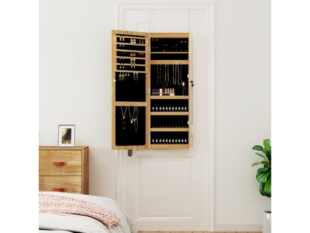 - Prostorově úsporný design: Zrcadlovou šperkovnici můžete zavěsit na dveře pomocí přiložených háčků nebo ji připevnit na stěnu a ušetřit tak místo na podlaze.