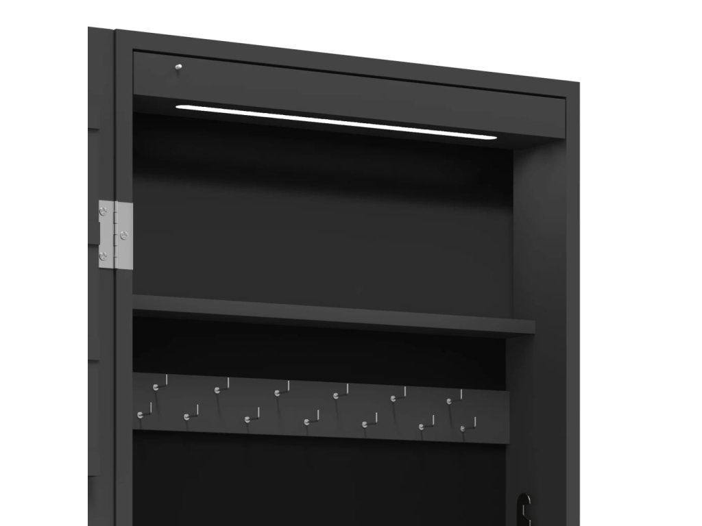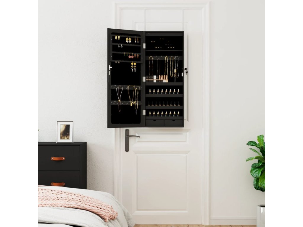 - Prostorově úsporný design: Zrcadlovou šperkovnici můžete zavěsit na dveře pomocí přiložených háčků nebo ji připevnit na stěnu a ušetřit tak místo na podlaze.