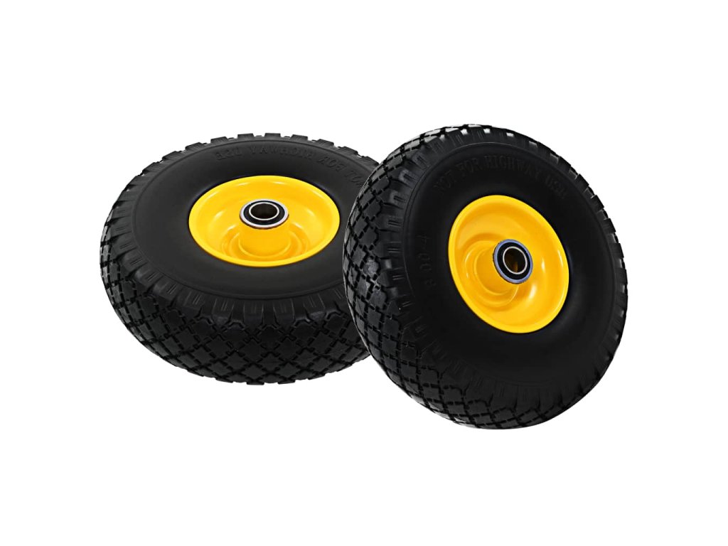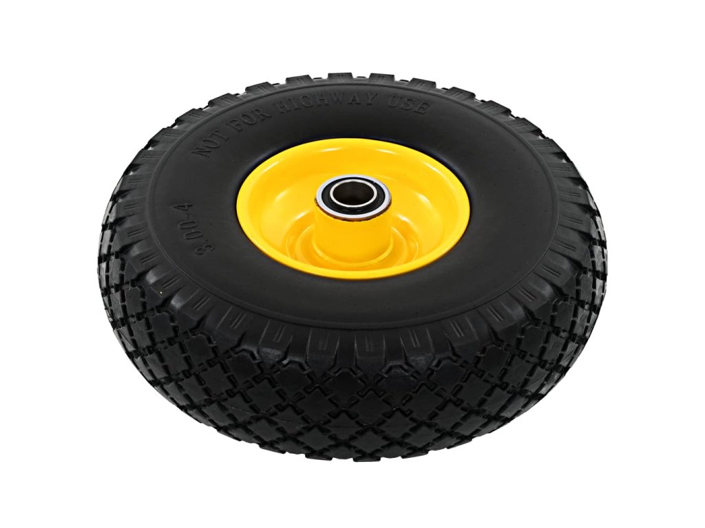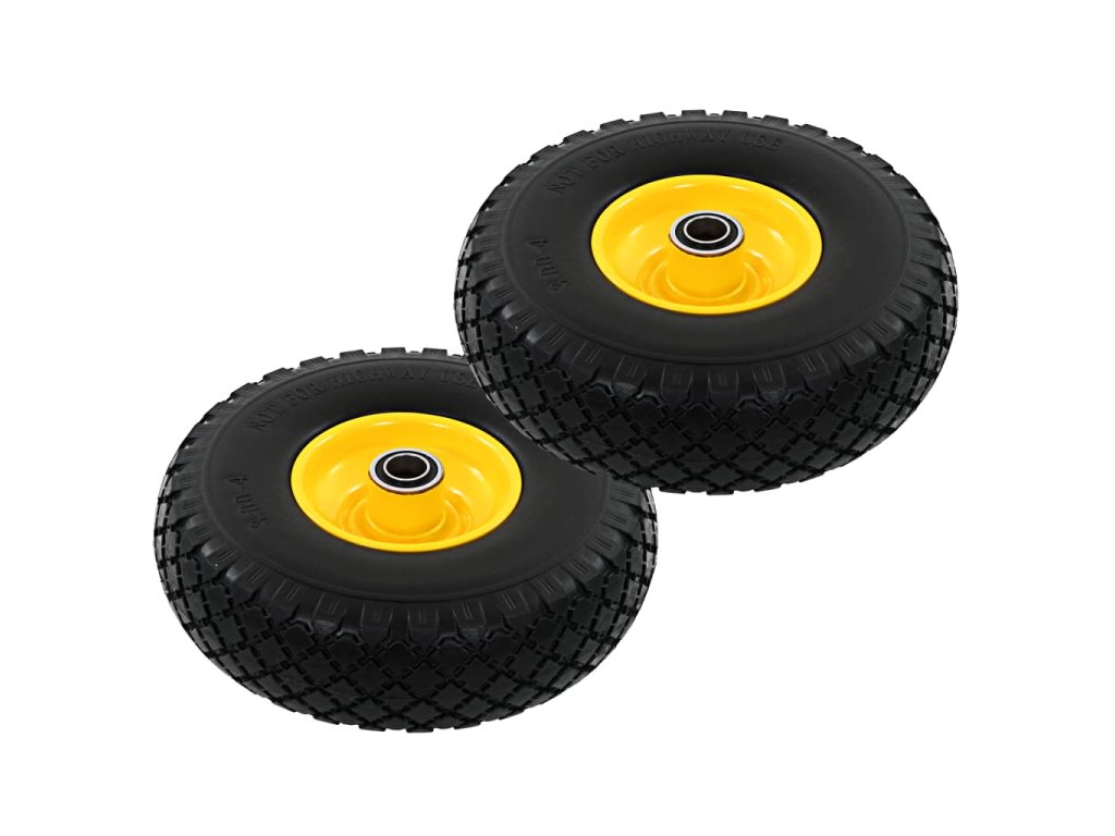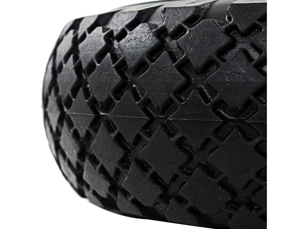 Solidní pneumatiky jsou vyrobeny z odolného, otěruvzdorného PU elastomeru a mají speciálně designovaný vzorek, který zvyšuje přilnavost k povrchu při vyšších rychlostech. Ráfky kol jsou vyrobeny z odolného kovu. Náhradní kolečka k vozíku mají univerzální velikost a lze je snadno instalovat do rudlů, ručních vozíků apod.